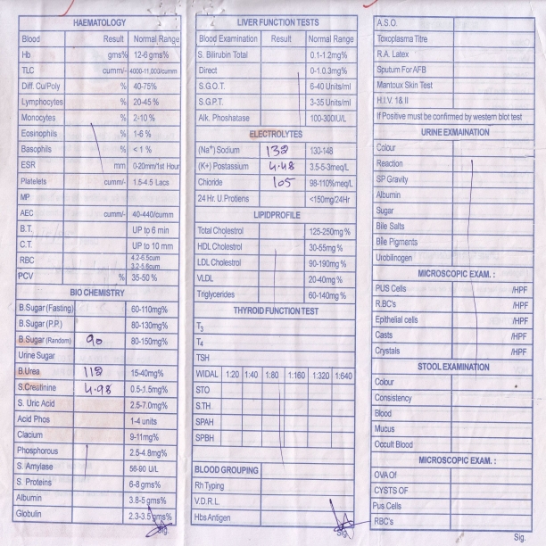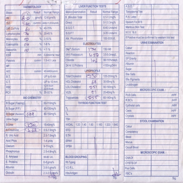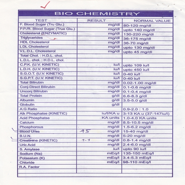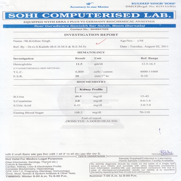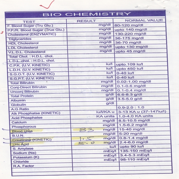 esjk S. Creatinine 2.0 FkkA ,l ih gsyFkds;j lsuVj okyksa us fcYdqy Bhd fd;kA esjk ne p<+rk FkkA eksVkik Fkk] iSjksa ij lkst FkhA fcYdqy Bhd gks xbZ] otu 5 fdyks ?kVkA