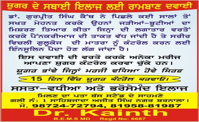 ਪੁਰਾਣੇ ਤੋਂ ਪੁਰਾਨਾ ਸ਼ੁਗਰ ਜਿਸ ਦਾ ਤੁਸੀਂ ਬਹੁਤ ਇਲਾਜ ਕਰਵਾਇਆ ਹੋ , ਪਰ ਹੱਲ ਨਹੀਂ ਹੋਇਆ , ਅਸੀ ਤੁਹਾਡੀ ਇਸ ਰੋਗ ਦਾ ਹੱਲ ਜੜ ਤੋਂ ਕਰਾਂਗੇ | ਤੁਹਾਡੇ ਪੈਂਕਰੀਯਾਜ਼ ਦੀ ਤਾਕਤ ਸਾਡੀ ਦਵਾਈ ਵਧਾਏਗੀ | ਤੁਹਾਡਾ ਪੈਂਕਰੀਯਾਜ਼ ਇੰਸੁਲਿਨ ਬਣਾਉਣ ਲੱਗੇਗਾ | ਜਦੋਂ ਕੁਦਰਤੀ ਇੰਸੁਲਿਨ ਬਨਣ ਲੱਗ ਗਿਆ ਤਾਂ ਤੁਸੀ ਆਪਣੇ ਆਪ ਸ਼ੁਗਰ ਤੋਂ ਮੁਕਤੀ ਪ ਸਕੇਂਗਾ | ਏਲੋਪੈਥਿਕ ਦਵਾਈਆਂ ਅਤੇ ਟੀਕੇ ਇਸ ਦੀ ਰੋਕ ਹੀ ਕਰਦੇ ਹਨ , ਅੰਗ ਦੀ ਤਾਕਤ ਨਹੀਂ ਵਧਾਉਂਦੇ | ਜਿਸ ਕਰਣ ਅੰਗ ਦੀ ਤਾਕਤ ਦਿਨੋ ਦਿਨ ਘਟਦੀ ਜਾਂਦੀ ਹੈ ਅਤੇ ਅਖੀਰ ਇੱਕ ਦਿਨ ਸ਼ੁਗਰ ਕੰਟਰੋਲ ਕਰਣ ਵਾਲਾ ਟੀਕਾ ਵੀ ਕੰਮ ਕਰਣ ਬੰਦ ਕਰ ਦਿੰਦਾ ਹੈ | ਟੀਕੇ ਨਾਲ ਸ਼ੁਗਰ ਕੰਟਰੋਲ ਜਰੂਰ ਹੁੰਦੀ ਹੈ ਪਰ ਸ਼ਰੀਰ ਅੰਦਰ ਹੀ ਅੰਦਰ ਘੱਟਦਾ ਰਹਿੰਦਾ ਹੈ | ਇਸਦੇ ਨਤੀਜਾ ਸਵਰੂਪ ਰੋਗੀ ਨੂੰ ਬਹੁਤ ਜ਼ਿਆਦਾ ਸਰੀਰਕ ਕਮਜੋਰੀ ਹੋ ਜਾਂਦੀ ਹੈ | ਰੋਗੀ ਨਿਰਾਸ਼ ਰਹਿਣ ਲੱਗਦਾ ਹੈ | ਜੇਕਰ ਤੁਸੀ ਅਜਿਹੀ ਨੌਬਤਾਂ ਤੋਂ ਬਚਨਾ ਚਾਹੁੰਦੇ ਹੋ , ਸ਼ੁਗਰ ਕੰਟਰੋਲ ਕਰਕੇ ਸ਼ੁਗਰ ਵਾਲਾ ਟੀਕਾ ਲੱਗਣ ਤੋਂ ਹਟਵਾਉਣਾ ਚਾਹੁੰਦੇ ਹੋ ਤਾਂ ਹੁਣੇ ਸਾਡੇ ਨਾਲ ਸੰਪਰਕ ਕਰੋ |