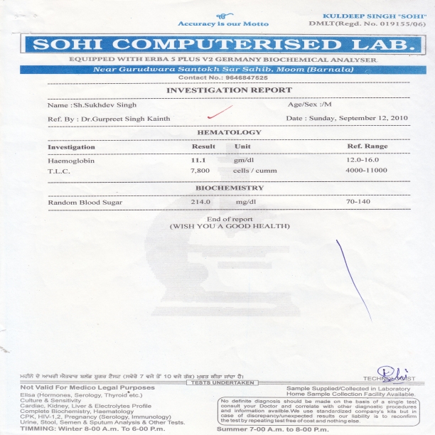 esjk 'kwxj cgqr vf/kd jgrk FkkA de ls de ;g rdyhQ eq>s fiNys 12 lkyksa ls Fkh] vc eSa ,l ih gsyFkds;j lsuVj ls nok [kkus ij fcYdqy Bhd gwбA